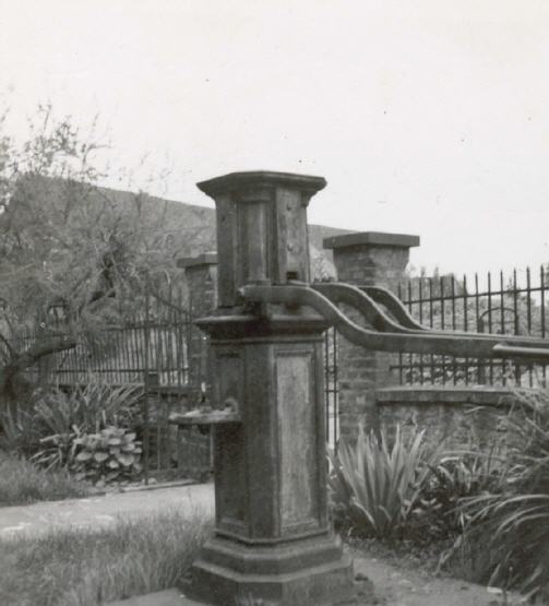 Die ungewöhnlich große und leistungsfähige Wasserpumpe, die vermutlich Anfang des 20. Jahrhunderts installiert wurde, steht im Vorgarten des Domhofes in Manstedten. Da Manstedten bis 1923 ohne Wasserleitung war und der ernorm hohe Wasserbedarf gerade auf den großen Bauernhöfen mit Hilfe von Pumpen gedeckt werden musste, half sich der Inhaber des Domhofes mit einer "modernen" Pumpe, welche die üblichen Wasserpumpen bei weitem in den Schatten stellte. Für die Inhaber der vier großen Höfe in Manstedten war es schwer erträglich, dass das benachbarte Kreiswasserwerk Bergheim bereits seit 1905 und das Wasserwerk in Stommeln seit 1908 in Betrieb war, sie selbst aber – als Bürger der Gemeinde Geyen – vom zivilisatorischen Fortschritt ausgeschlossen waren. Im Februar 1922 wandten sie sich an die Gemeinde Geyen mit dem Antrag, die "Wassernot" in Manstedten zu beheben und den Ort an das Wasserleitungsnetz der Kreiswasserwerke Bergheim anzuschließen. Da die Gemeinde sich dazu finanziell nicht imstande sah, veranlassten sie Anfang 1923 auf eigene Rechnung den Bau einer Wasserleitung in Manstedten mit Anschluss an das Bergheimer Leitungsnetz. Im Mai 1923 beschloss der Geyener Gemeinderat dann, den bis Manstedten verlegten Hauptrohrstrang bis Geyen weiterzuführen. Über Manstedten kam auf diese Weise auch Geyen – endlich – zu einer Wasserleitung.