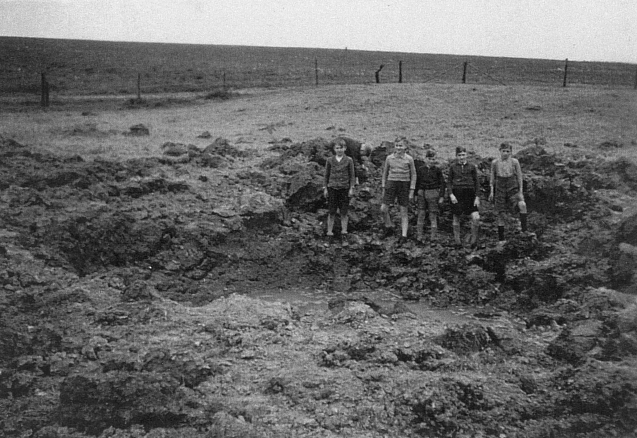 Sinthern - Bombentrichter einer in der Nähe der Ölmühle eingeschlagenen Sprengbombe in der Nacht vom 27.-28. Mai 1941