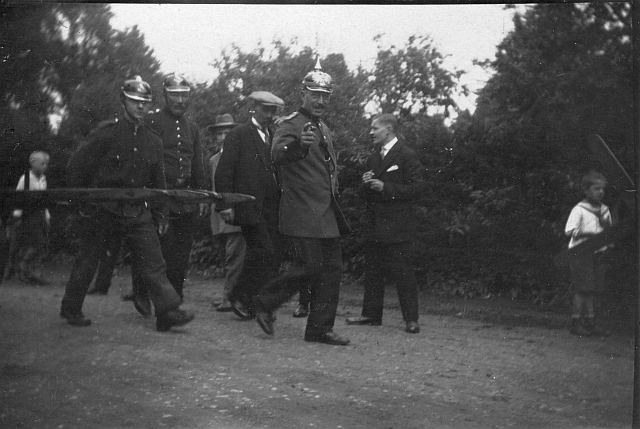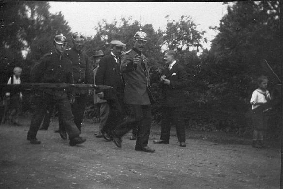 In der Bildmitte Lorenz Lenzen, der von 1925 bis 1945 die Freiwillige Feuerwehr Geyen, die im Jahr 1900 gegründet wurde, leitete. Die Aufnahme dürfte aus den späten zwanziger oder dreißiger Jahren stammen.