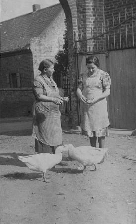 Sibylla Pesch (Mutter von Landwirt Josef Pesch) und Tochter Katharina Pesch (später Bollig). Der Hof wurde in der Zeit von 1928 bis 1958 von der Familie Pesch in Pacht bewirtschaftet. Der Conradshof an der heutigen Büsdorfer Straße war einer der fünf größeren Höfe, die es zu dieser Zeit in Manstedten gab. Er wurde laut Schlussstein im Bogen des Haupttores im Jahr 1844 erbaut.