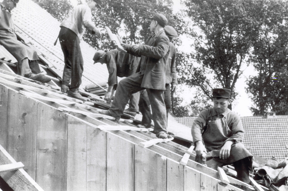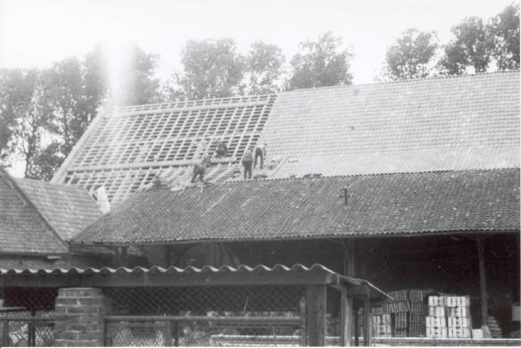Nachdem 1944 eine Brandbombe das Dach der Scheune vom Sintherner Fronhof teilweise in Brand gesetzt hatte, wurde das Dach mit Hilfe von französischen Kriegsgefangenen, die auf dem Hof auch Feldarbeit verrichteten, neu gedeckt und entspricht noch der heutigen Bedeckung.
