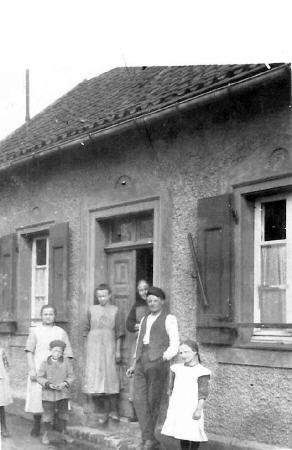 Die Familie Röllgen in den zwanziger Jahren vor ihrem Haus in der heutigen Kirchgasse (Nr. 14) in Sinthern: