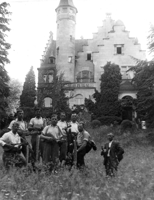 Der Geyener Klub wurde 1923 gegründet und bestand bis in das Jahr 1956. Das sehr markante Gebäude im Hintergrund mit charakteristischen Treppengiebeln und Turm mit achteckiger Haube (Schloss oder Herrenhaus) konnte bisher noch nicht identifiziert werden. Das Bild wurde vor dem 2. Weltkrieg aufgenommen.