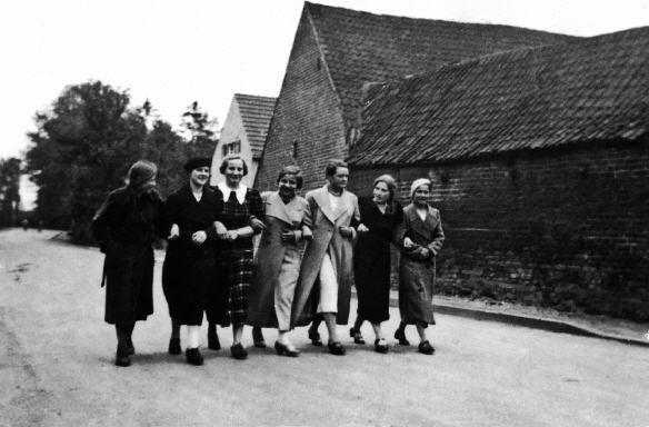 v.l.n.r.: Maria Bauer geb Graefrath, Freundin aus Junkersdorf, Gertrud Hintzen (wohnte im Haus Horst) Klara Schurf geb. Robens (Mühle), Therese Burbach geb. Vosen, Sofia Czaja geb. Graefrath, Elisabeth Verhnjak (später Lamberg) geb. Schurf