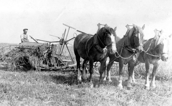 Lorenz Lenzen (1881-1948) bei der Feldarbeit zwischen Manstedten und Geyen. Der Geyener war bei Landwirt Josef Helmig in Manstedten beschäftigt. Er wohnte Dorfstraße 62 (heute Sintherner Straße 12) und gründete 1939 die Jugendfeuerwehr. Von der Mitte der zwanziger Jahre bis 1945 war er Löschzugführer der Freiwilligen Feuerwehr in Geyen. 1937/1938 war er Schützenkönig der St. Cornelius Schützenbruderschaft Geyen von 1927 e.V.