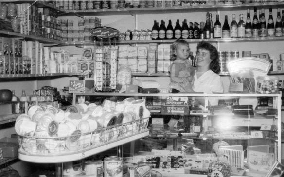 Im neu eröffneten Lebensmittelladen: Tochter Annerose Schmitz (Röschen Schauff) mit Nichte Elisabeth Esser, geb. Schauff