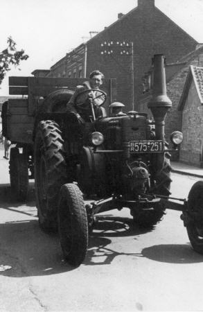Erwin Klein auf der heutigen Brauweiler Straße vor der Einfahrt in die Kreuzstraße war von 1946 bis 1955 als Traktorfahrer auf dem Fronhof in Sinthern bei Franz Pingen beschäftigt.